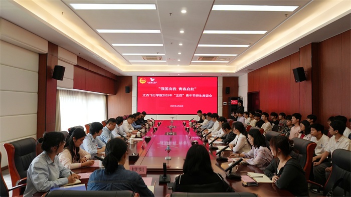 党委宣传部、学工部、校团委等部门负责人及各二级学院团总支负责人,青年教师代表、各二级学院青年学生代表、红色班级243飞行器制造工程班全体学生参加座谈会。