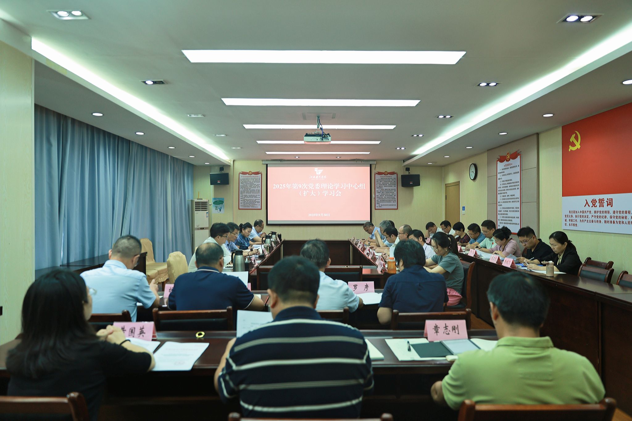 9月30日,学校召开2025年第9次党委理论学习中心组(扩大)学习会。会议深入学习贯彻习近平总书记关于意识形态工作的重要论述。党委书记陈震主持学习会并讲话,在家校领导,相关部门负责同志参加学习。