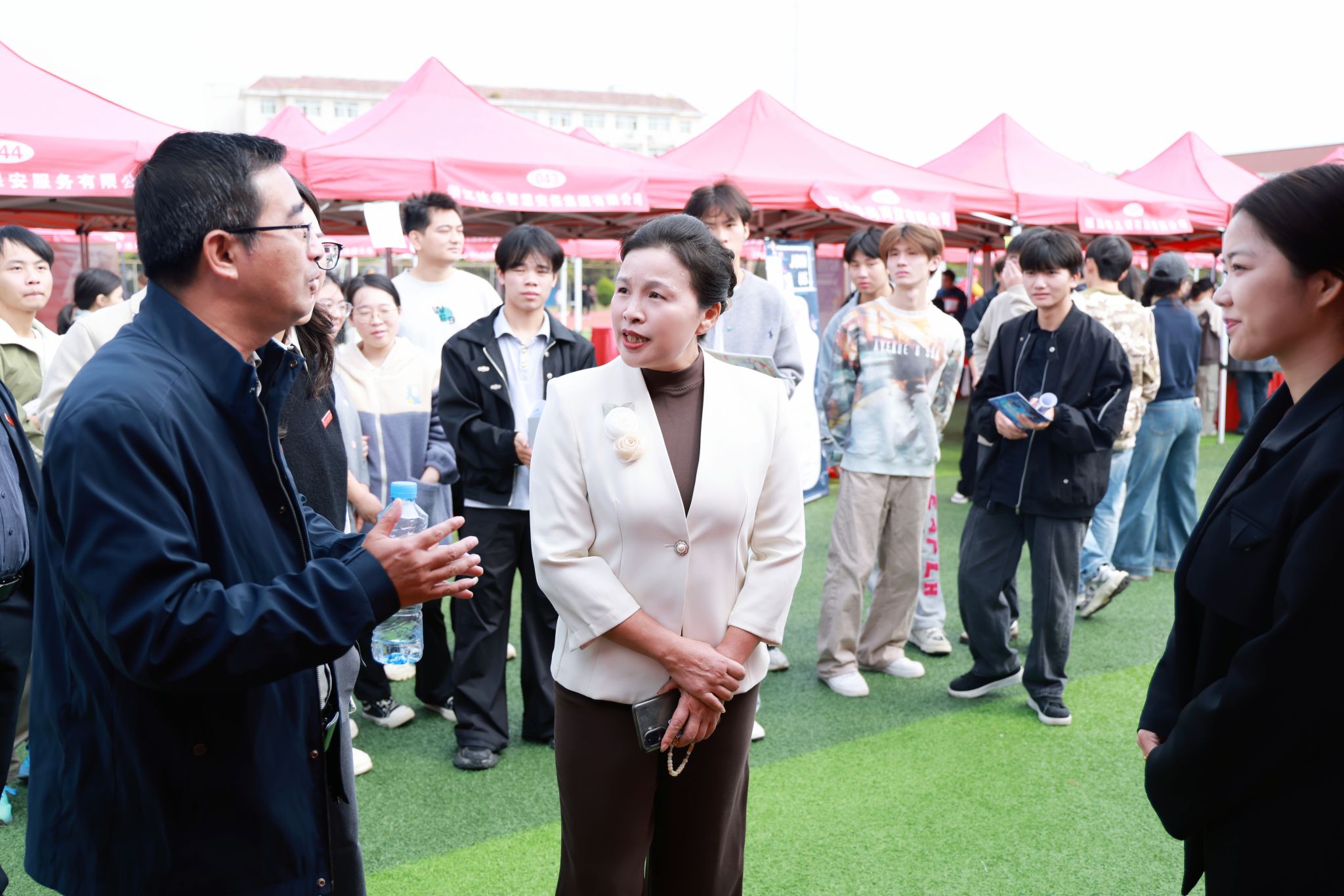 校长龙国英深入会场,逐一走访了多家重点用人单位展位,对各用人单位长期以来对学校事业发展的支持表示感谢,并与企业代表亲切交谈,详细了解行业发展趋势、招聘需求以及对学校人才培养工作的建议;同时,与现场求职的毕业生们亲切交流,鼓励学生树立正确的就业观,把握机遇,充分展示自己的才华与能力,找到实现人生价值的舞台。