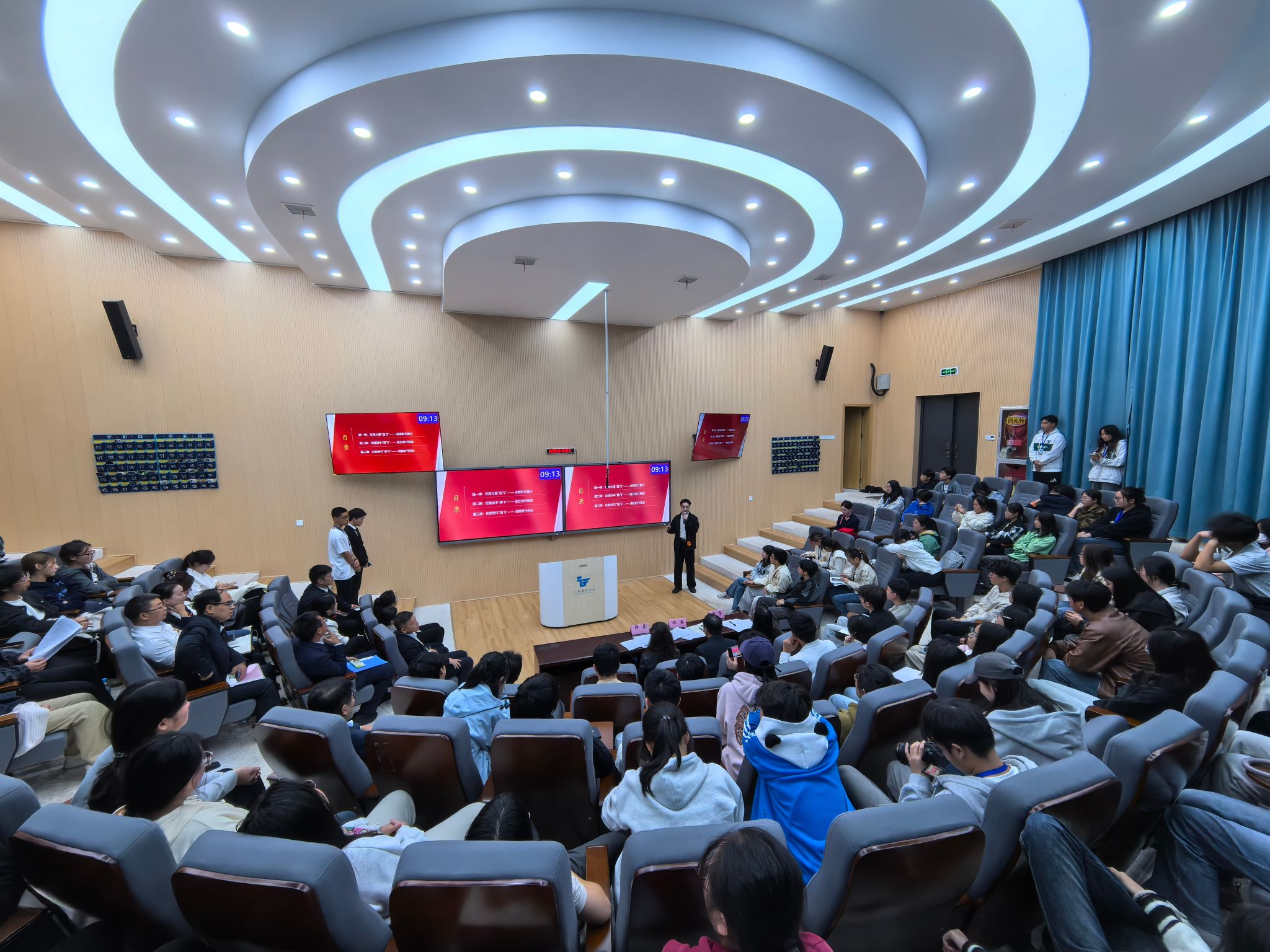 本次决赛由校党委委员、统战部部长唐勇,党委委员、宣传部部长李方明和校内外七位专家共同担任评委,机关青年干部理论学习小组成员、2025级团支部书记培训班学员、大学生骨干班学员等300余名师生到场观摩学习。