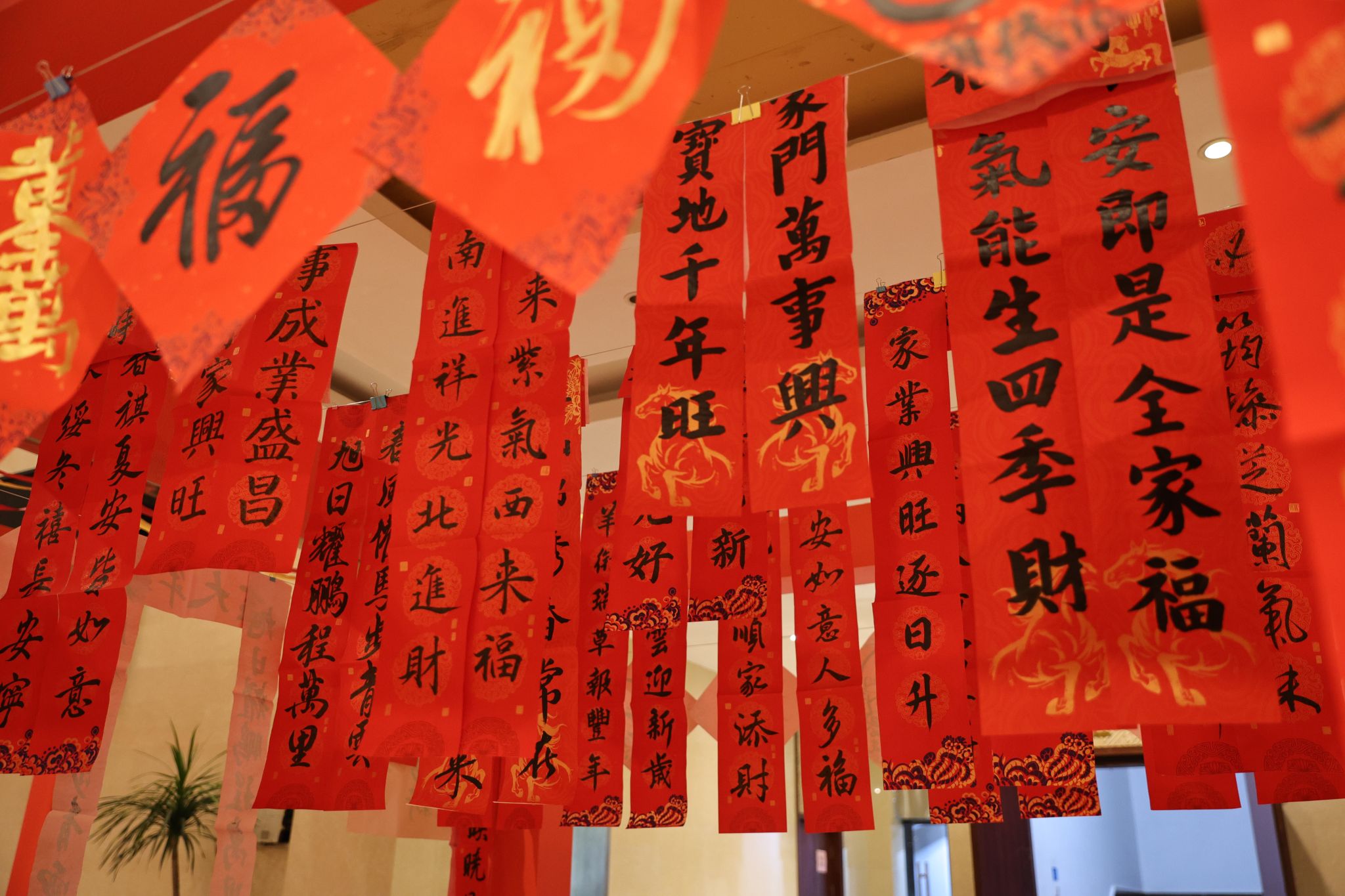 活动现场,南昌市书法名家、学校退休职工代表、有书法特长的青年教师和书法协会的同学们一起现场挥毫,书写春联与“福”字赠送给参与活动的师生,共同传递新春美好祝愿。