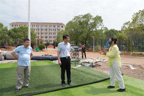 陈震先后来到教学楼、运动场、田径场、学生宿舍,对暑期校园重点项目建设情况进行督导,询问了解各项目施工进展情况。