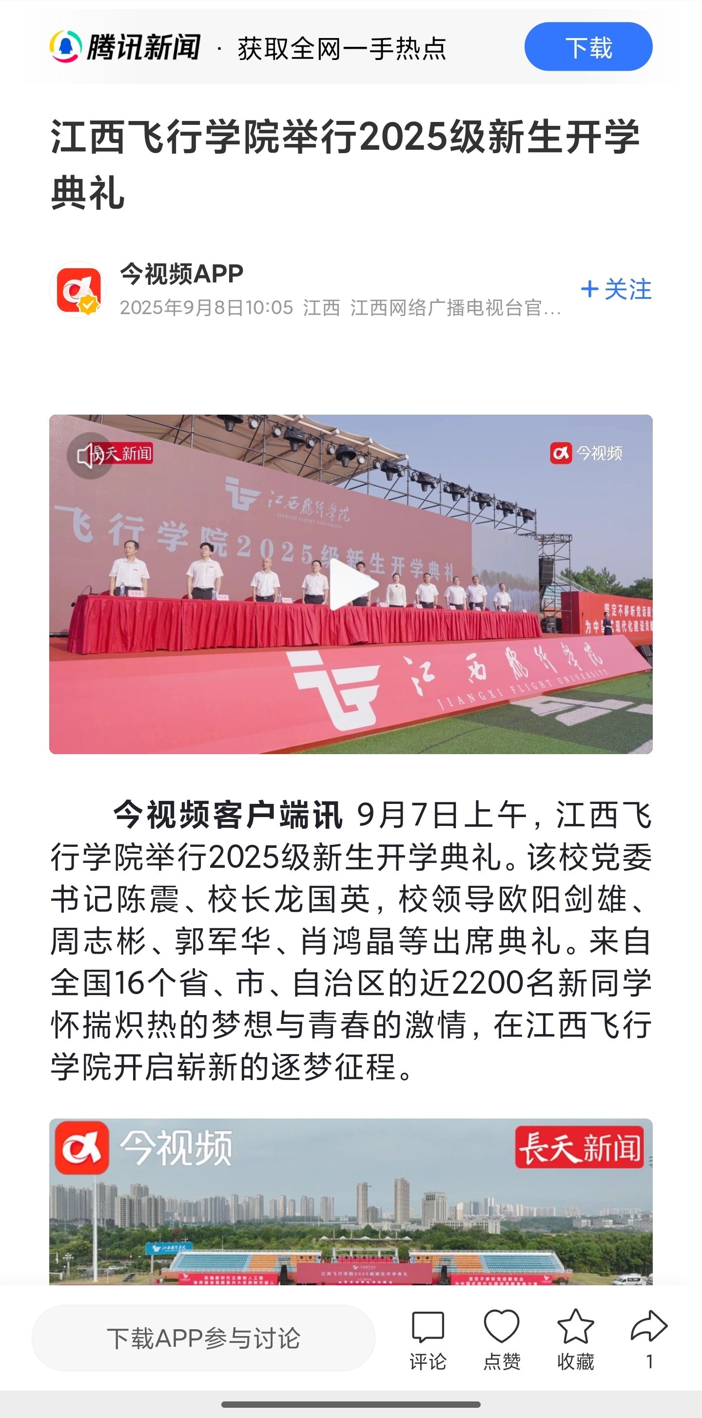 近日,腾讯新闻报道江西飞行学院举行2025级新生开学典礼详情如下
