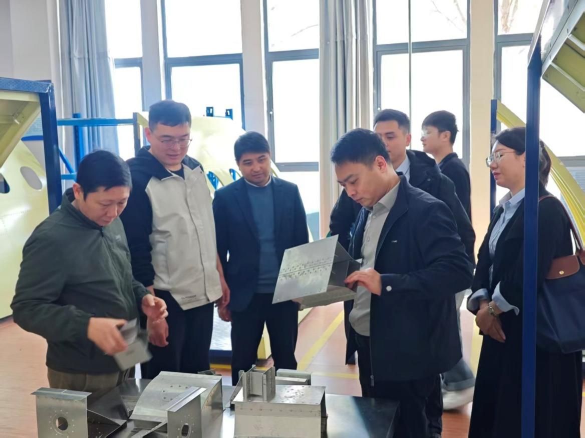 座谈会后,吴剑一行前往航空大楼实训室进行参观。在参观过程中,学院相关负责人详细介绍了航空工程类专业实践教学体系、实验设备配置及学生实训开展情况。来访嘉宾对学院的实训条件和产教融合成效给予高度评价,表示希望进一步拓展合作空间,推动资源共享、优势互补。